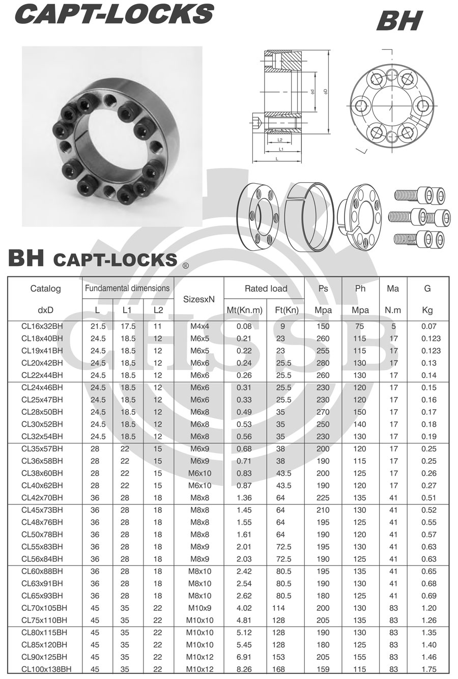 BH型脹套是B型的變形,補充B(Z2)型不能涵蓋的尺寸;其采用3個零件組成,結構更簡單,軸向變形補償